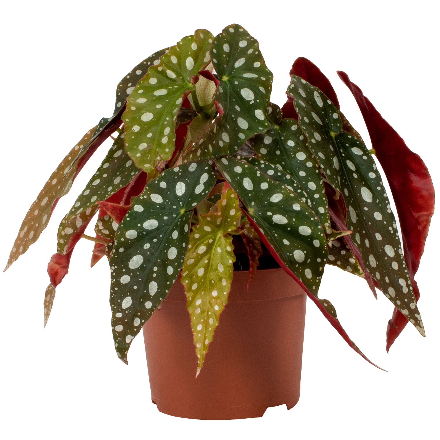 Highly decorative spotted leaves, very appreciated by plant collectors all over the world, and one of our favourite varieties of begonias. Can reach an impressive 90cm tall, but needs gardening support to fully grow, encourage new leaves, and protect the stems from any damage.
