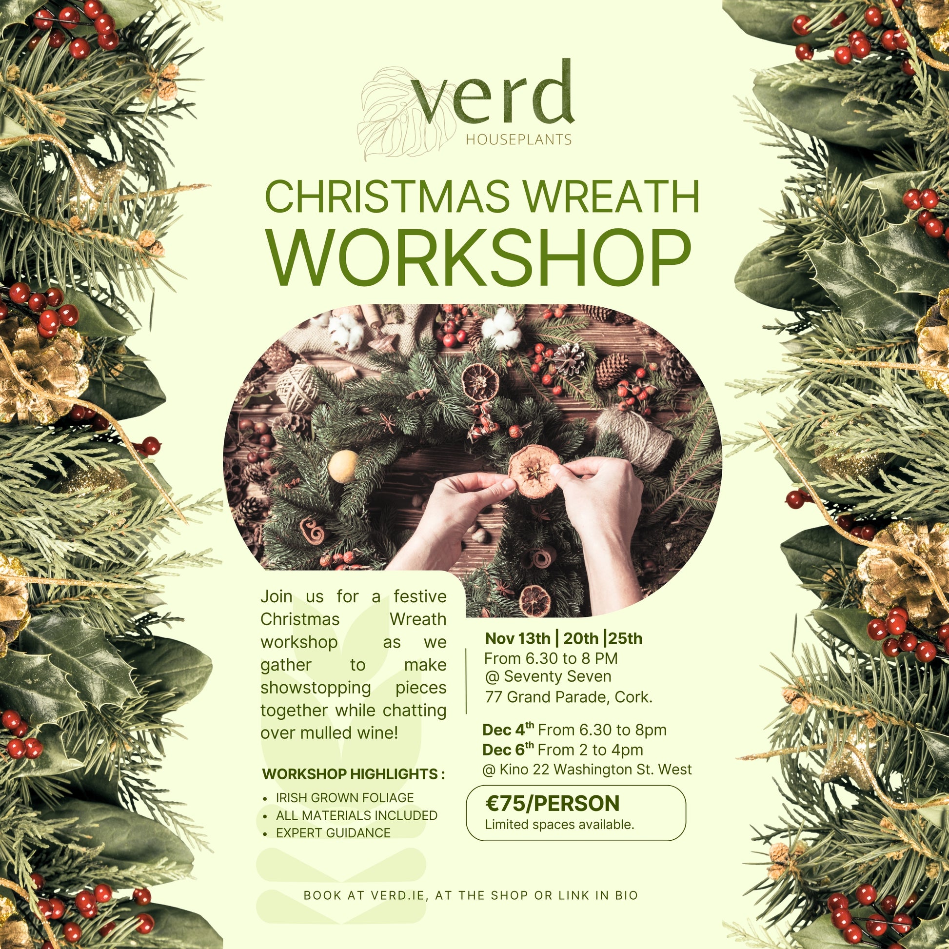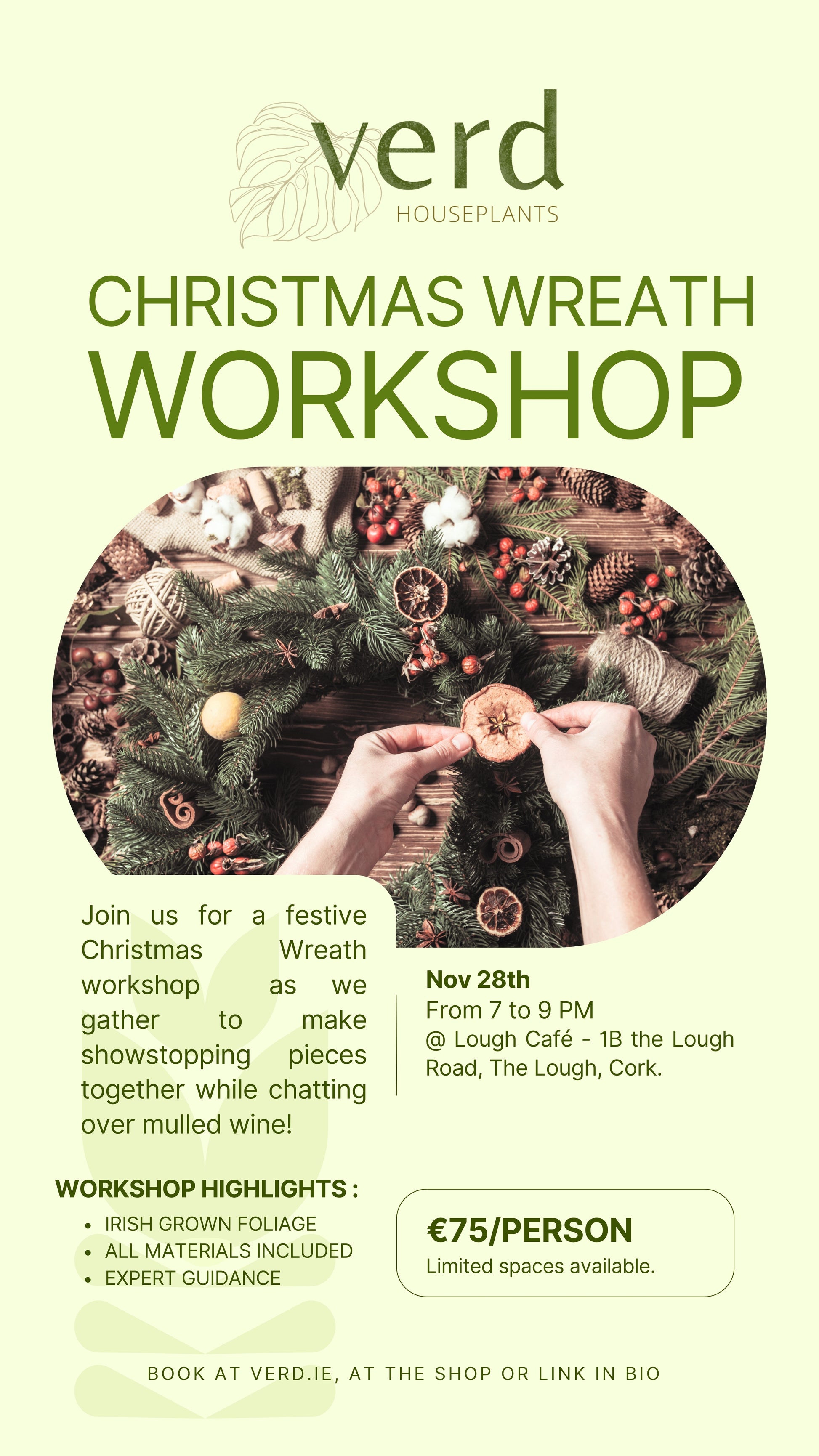 Join us for a festive Christmas Wreath workshop as we gather to make showstopping pieces together while chatting over mulled wine!
