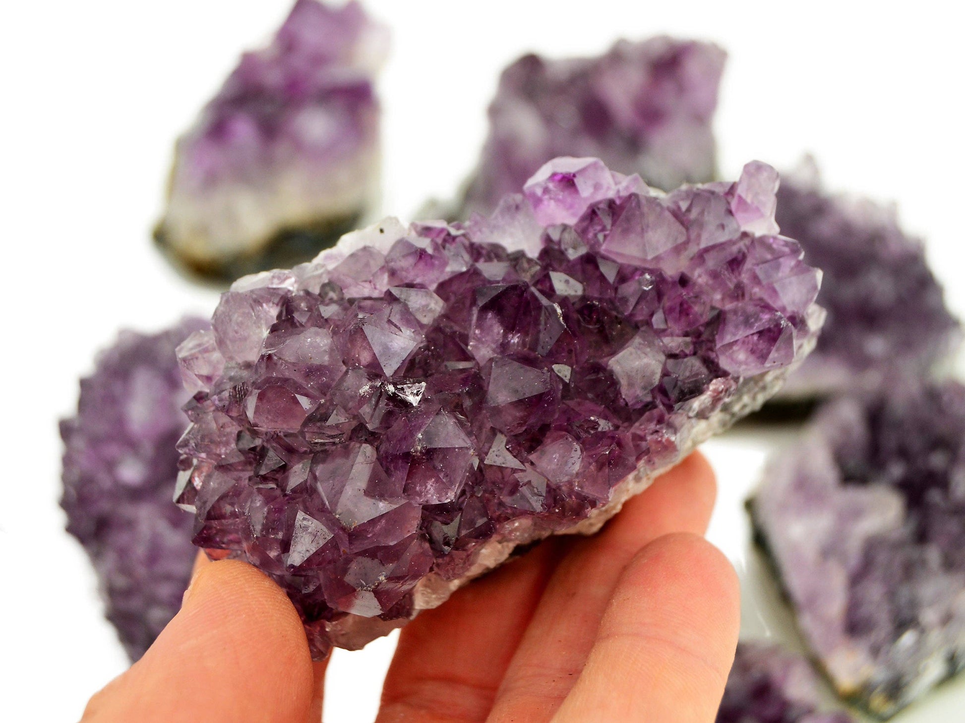 Natural druzy amethyst mineral. You get one raw amethyst cluster from Brazil very similar to appear in image above, picked at random. Please expect some slight variation in terms of color, transparency, size and shape, as there are some variations unique for each stone. Note that all crystals are natural, so sometimes little imperfections can appear.