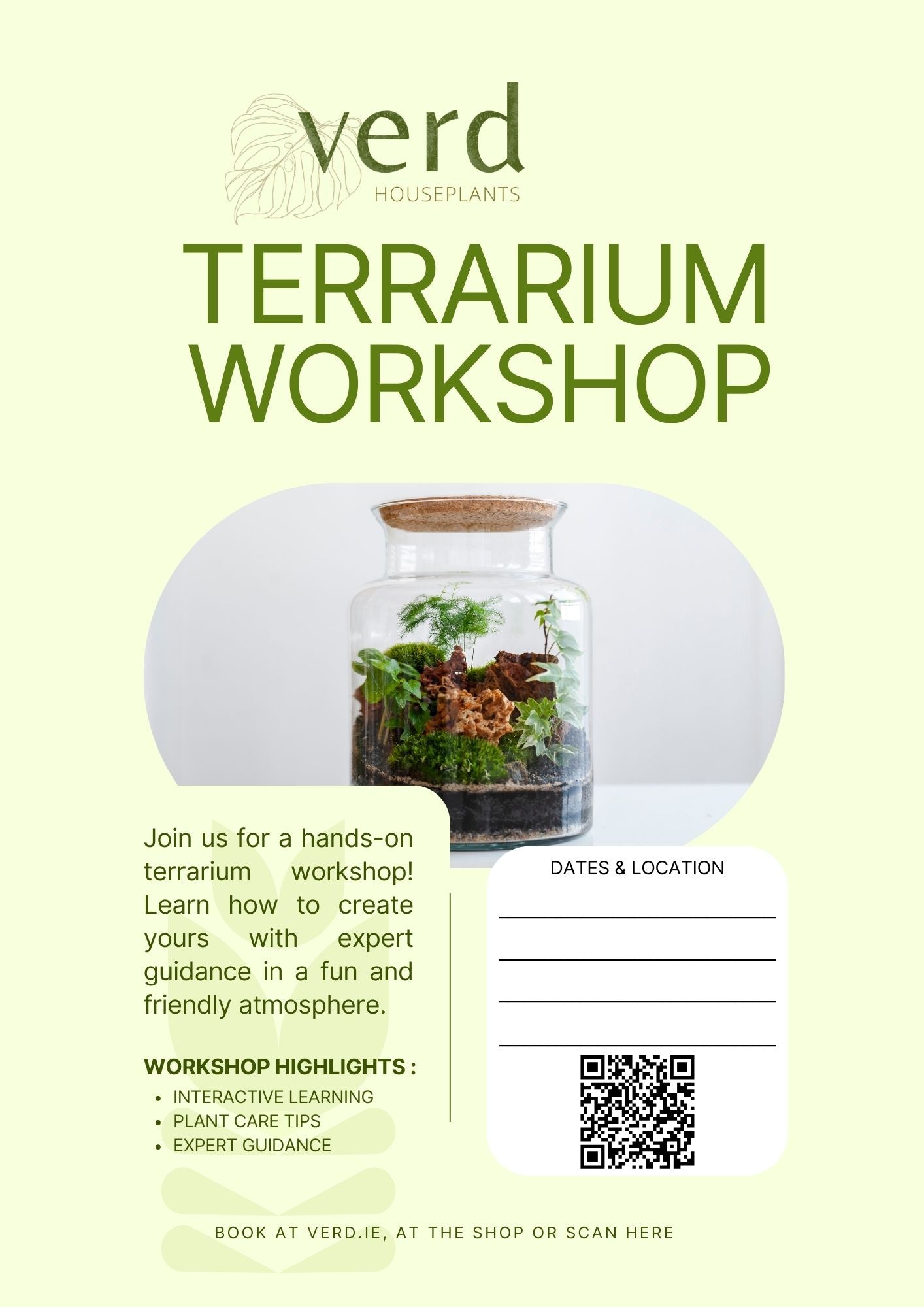 Join us for a hands-on terrarium workshop! Learn how to create yours with expert guidance in a fun and friendly atmosphere.