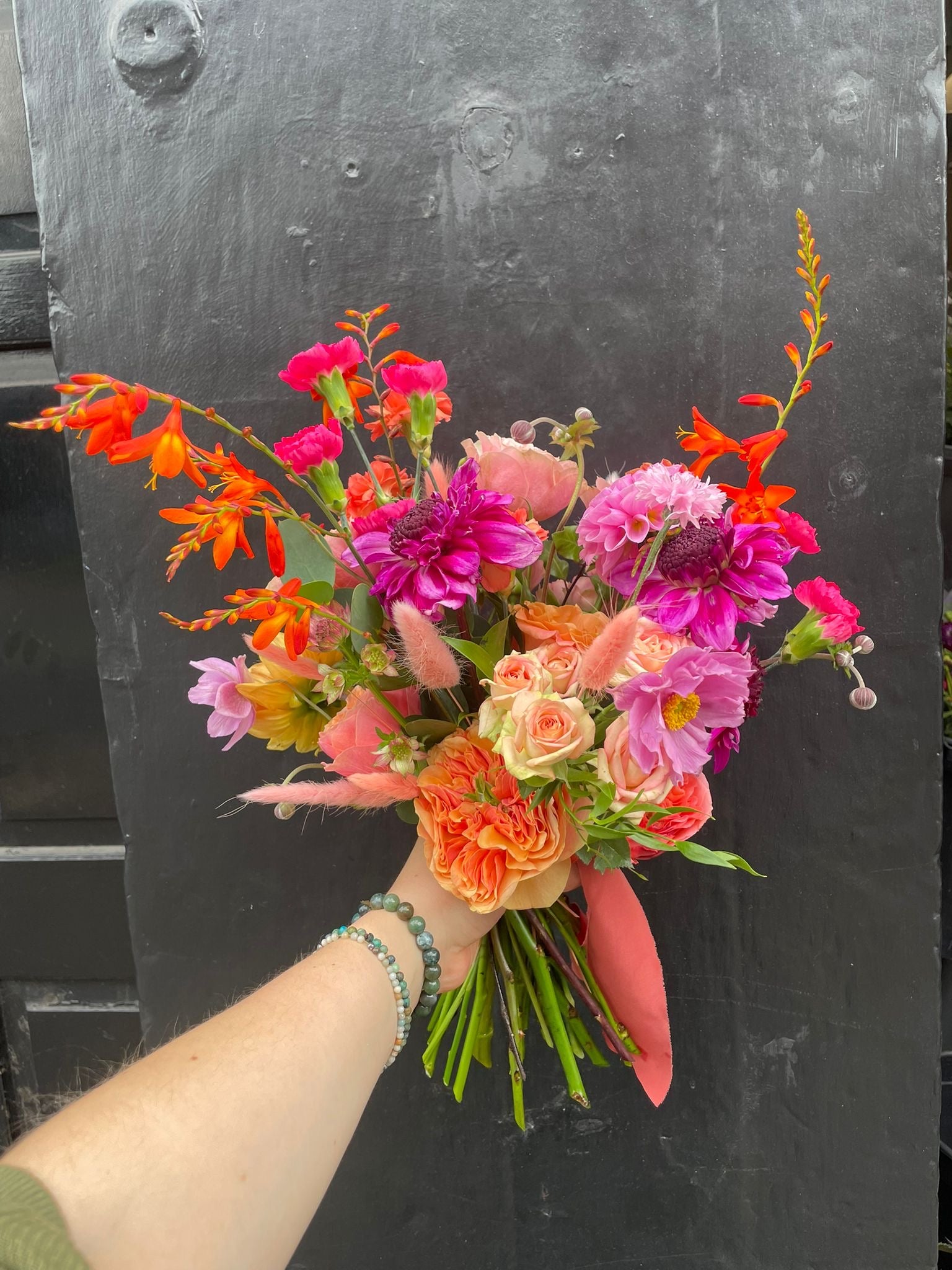 We use seasonal, locally grown flowers when available, alongside a selected range of Dutch grown flowers as needed. If you have a specific requirement about your flowers, please contact us and we will do our best to accommodate your choice but please note that prices could change depending on your choice of blooms.